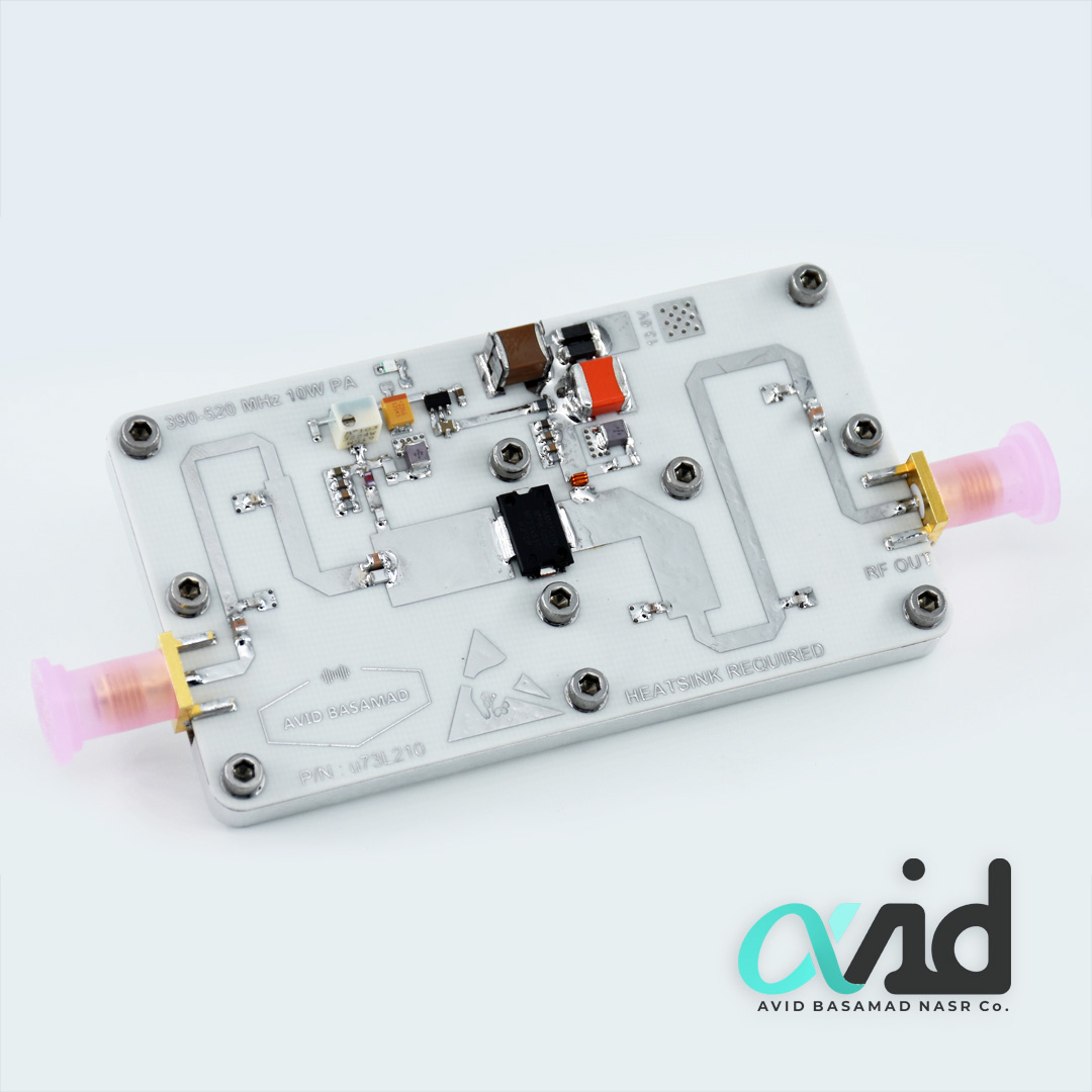 تقویت کننده UHF ( محدوده فرکانسی 520-390 مگاهرتز ) با توان خروجی 10 وات ، این محصول برای افزیش برد لینکهای رادیویی با مدولاسیون دیجیتال و سیستمهای ارسال صوت ( برودکست محلی ) مناسب سازی شده است . همچنین از این تقویت کننده توان می توان درسیستمهای جنگ الکترونیک سیار ( جمر) نیز با در نظر گرفتن ملاحظات مربوطه استفاده کرد.