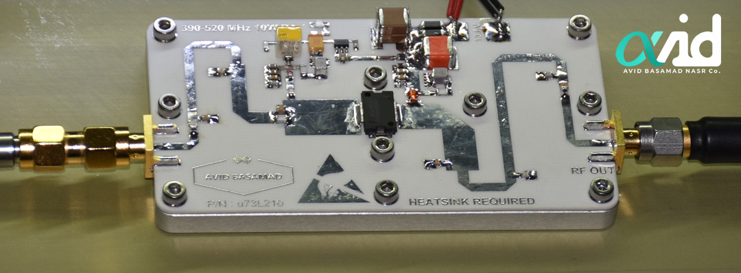 تصویر پیش رو ازتقویت کننده UHF صرفا نمونه ی آزمایشگاهی بوده و محصول نهایی در پکیج مخصوص و مطابق با استانداردهای محیطی و اینترفیسهای ارتباطی مد نظر کارفرما (CAN, Serial ,Analog) ارائه میگردد.